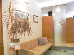 患者さまに治療前のおちついた空間を味わっていただき、リラックスしていただけるよう考えています。